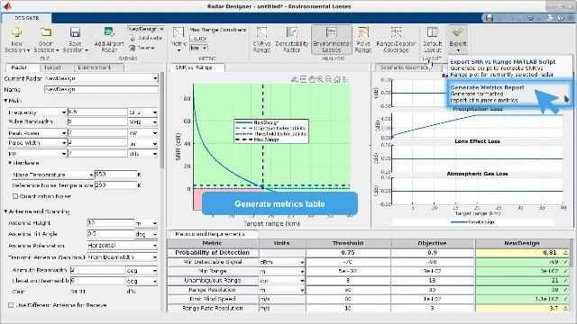 - Select radar parameters, design waveforms and sensor arrays interactively, and explore trade-offs with the radar range equation and link budget