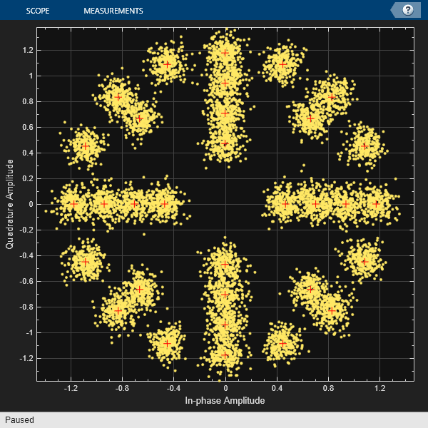 for i = 1:2 cd = comm.ConstellationDiagram(ReferenceConstellation=refConst{i}, ... ShowReferenceConstellation=true); cd(rxSym{i}) end