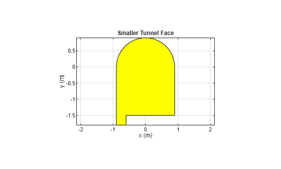 Figure contains an axes object. The axes object with title Smaller Tunnel Face, xlabel x (m), ylabel y (m) contains 3 objects of type patch.