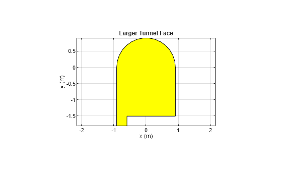 Figure contains an axes object. The axes object with title Larger Tunnel Face, xlabel x (m), ylabel y (m) contains 3 objects of type patch.
