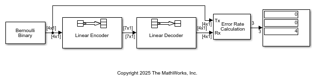 The Binary Linear Decoder block recovers a binary message vector from a binary codeword vector of a linear block code. For more information, see Linear Block Coding.