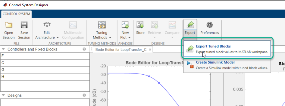 The Control System Designer app lets you design single-input, single-output (SISO) controllers for feedback systems modeled in MATLAB® or Simulink® (requires Simulink Control Design™ software).