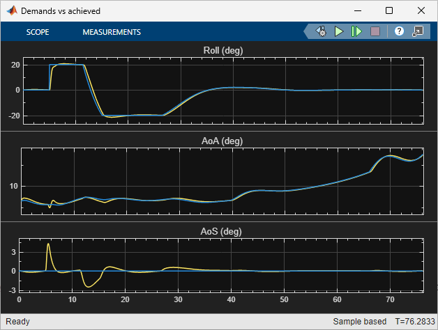 Once you push the gains to Simulink, tuning of the MIMO architecture is complete and you can simulate its behavior during the landing approach.