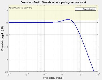 Overshoot Goal limits the overshoot in the step response between the specified signal locations. The constraint is satisfied when the overshoot in the tuned response is less than the target overshoot