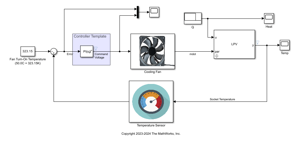 This example shows how to tune a PI controller to drive the cooling fan and control the temperature of the heat sink model. In this example, you use the LPV model created in the previous step of the tutorial to tune the controller.
