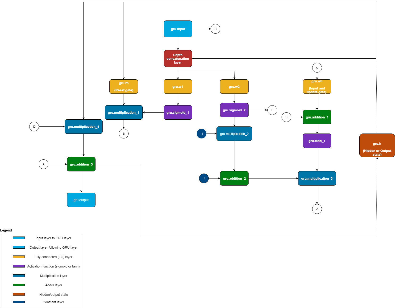 • Generates sigmoid, hyperbolic tangent, multiplication, and addition layers to replace the mathematical operations of the GRU layer.