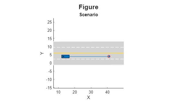 play(scenarioDescriptorPlotObj,Name=Value) specifies additional options for playing the scenario simulation using one or more name-value arguments. For example, PlaybackSpeed=2 simulates the scenario with a speed double the default playback speed of the input scenario by skipping two consecutive scenario frames.