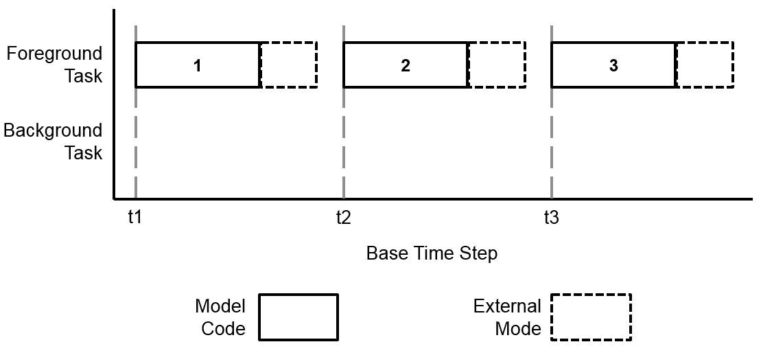 The task descriptions that follow assume Single-Tasking Execution. They can also be applied to Multitasking Execution, where the background task containing the external mode executes with the lowest priority.