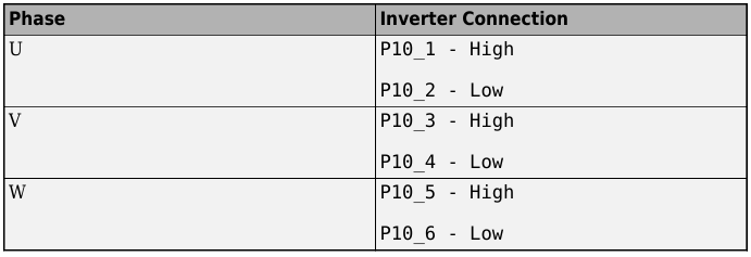 Locate the PWM pins, P10_1 to P10_6 and connect them to the Inverter.