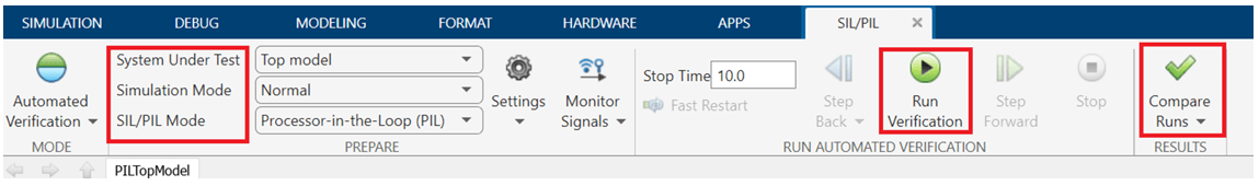 This section shows how to verify the generated code for a top-level model by running a Processor-in-the-Loop (PIL) simulation using the SIL/PIL Manager.