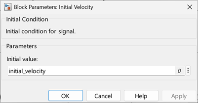 You can export intermediate signals of a model as internal variables of an FMU. For this model, expose the Velocity signal as internal variable of the FMU. Mark the signal for logging and create a Simulink.Signal object with the same name. You can also mark the signal as a test point or use a datastore to capture the value of a signal and export these as internal variables of the FMU. For detailed steps on configuring signal for internal variable export, see Configure Model to Export as FMU with Internal Variables.