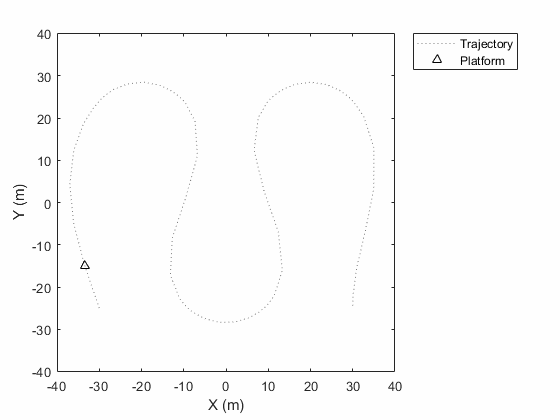 target = platform(ts); traj = waypointTrajectory('Waypoints',wayPoints,'TimeOfArrival',elapsedTime); target.Trajectory = traj;