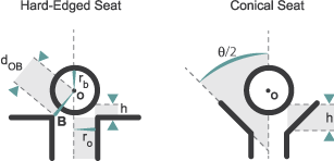 Geometry of the valve seat. The choice of geometry impacts the opening characteristics of the valve. See the block description for the valve opening calculations.