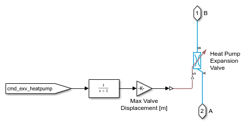The heat pump expansion valve provides the pressure drop needed to vaporize the refrigerant entering the condenser evaporator in heat pump mode. A PI controller controls the expansion valve to maintain a target compressor outlet pressure so that the refrigerant in the high-pressure line is sufficiently hot to provide heat to the cabin. The valve is closed in cold loop mode.