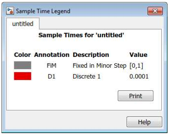 1. The Sample time parameter must be equal to the model base rate. To view the model base rate, select Display > Sample Time > All on the model toolbar. In the Sample Time Legend dialog box, the value corresponding to the red box is the base rate of the model.