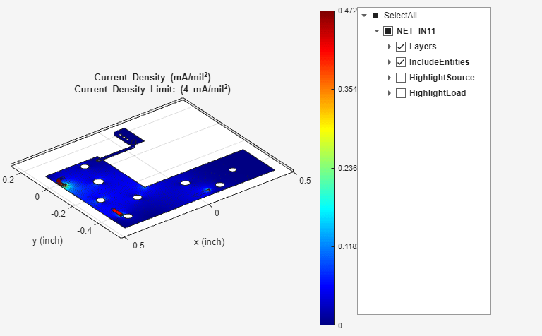 Set the properties of the powerDistributionNetwork object for voltage and current density anlysis
