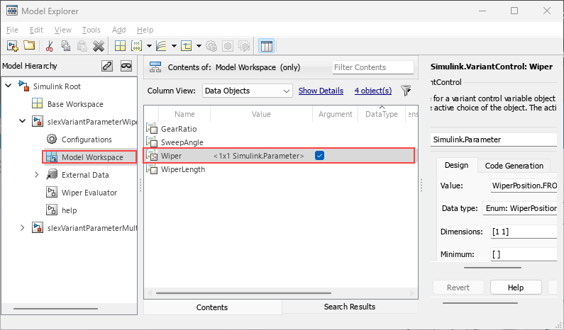 Open the model slexVariantParameterMultiInstance and the referenced model slexVariantParameterWiper.