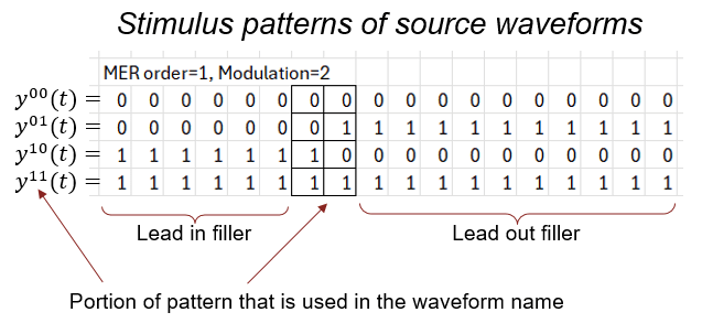 Note that for NRZ, the number of required waveforms doubles with each increase in MER order. Also, if the circuit simulator is perfectly time-invariant, you can obtain the y001(t)source waveform by simply delaying the y011(t)waveform, rather than running a separate simulation. Similar manipulations can help reduce the circuit simulation workload when you explore higher-order MER analysis.
