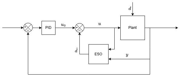 • Architecture — This figure shows a typical way of implementing ESO to compensate for plant input disturbances.