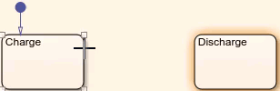 The chart places a default transition on the first state you add to the canvas. In this example, the default transition connects to the Charge state. You can add other default transitions from the palette by clicking the default transition icon and clicking the edge of a state.