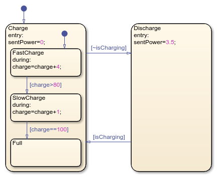 FastChargetoSlowChargethat executes whenchargeexceeds80.Add a child state named