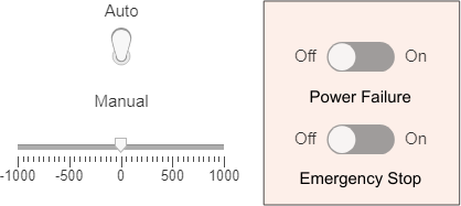 To activate a power failure or emergency stop, toggle the associated switches.