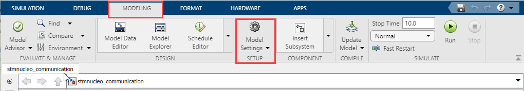 In this task, you configure the model for the supported STMicroelectronics Nucleo board