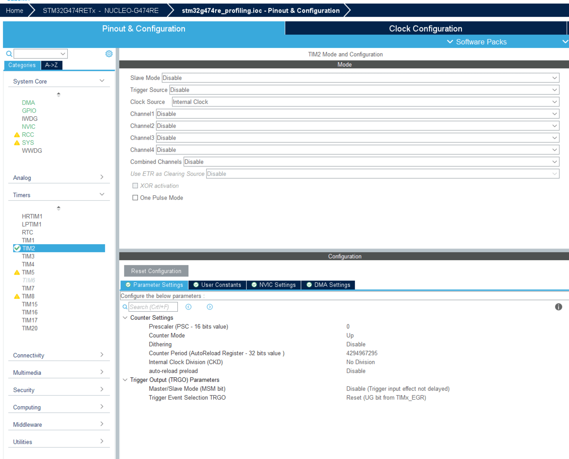 This example is preconfigured to run on the STM32G474RE Nucleo board. However the steps to perform profiling on any STM32 hardware with the required configurations are explained in the example.