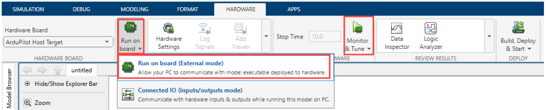 Go to Hardware tab, and click Monitor & Tune to configure the model for simulation.