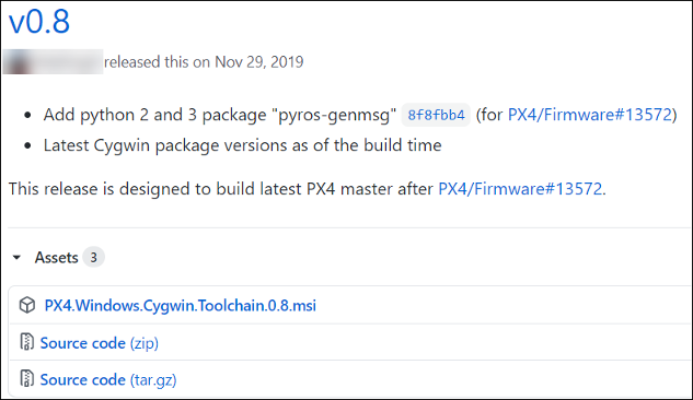 UAV Toolbox Support Package for PX4 Autopilots supports only version v0.8 of PX4 Windows® Cygwin Toolchain MSI Installer, even though a latest version may be available.