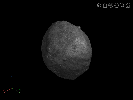 This example shows how to reconstruct a dense 3-D model of an asteroid from a sequence of images captured by NASA’s OSIRIS-REx spacecraft during its approach to the asteroid Bennu [1]. The workflow demonstrates a complete dense reconstruction pipeline using only RGB imagery. Starting with the camera intrinsics and the image sequence, the example first performs incremental structure-from-motion (SfM) to estimate camera poses, a view graph, and a sparse 3-D reconstruction. Dense optical flow from the RAFT deep learning model is then used to compute depth maps between overlapping views, which are filtered and combined to form a dense colored point cloud of the asteroid surface. Finally, Poisson surface reconstruction is applied to generate a smooth, watertight 3-D mesh suitable for visualization and further analysis.
