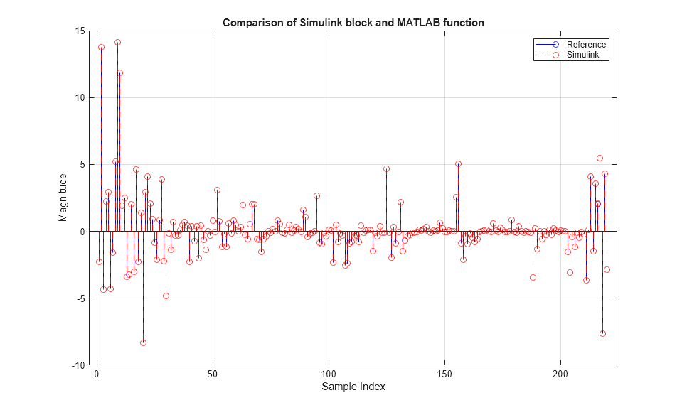 Running the Simulink model exports the stream of demodulated samples from Simulink to the MATLAB® workspace.